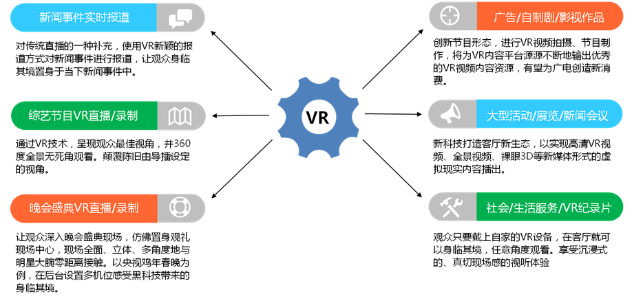 我们专业提供B端用户及广电360度全景VR直播技术解决方案。为您提供基于VR的视频推流直播、云服务、云存储、内容分发、全平台播放等服务。支持多终端PC/APP/H5实时观看直播,为您实现完整的端到端的VR直播服务!