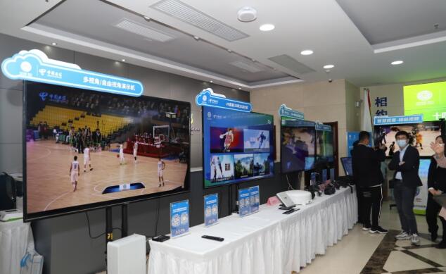 在篮球测试赛现场,中国电信陕西公司搭建了4路6目VR摄像机、72部像机,依托5G技术高带宽、低时延、高可靠性的优势,现场直播的传输速率达到了4G网络的十几倍,以毫秒级同步投射到屏幕上,传输速度和移动性有了更坚实的技术支撑。陕西公司智慧家庭运营中心总监郭波介绍说:“这些每一路都是4K高清,通过这些镜头,现场赛况的各路声画都被实时地上传至各大直播平台,大大满足了观众同步观看比赛的需求。不仅可以自由转换观赛视角,还可以从视角上拉近观众与比赛现场的距离,获得沉浸式观赛体验。”